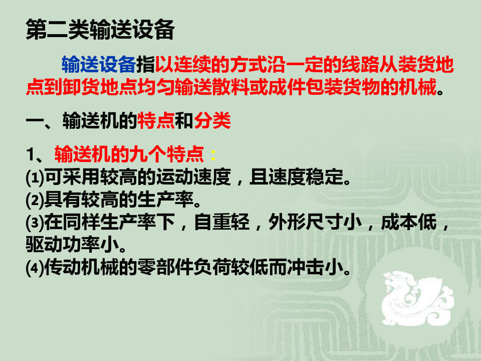 一、輸送機(jī)的特點(diǎn)和分類(lèi)