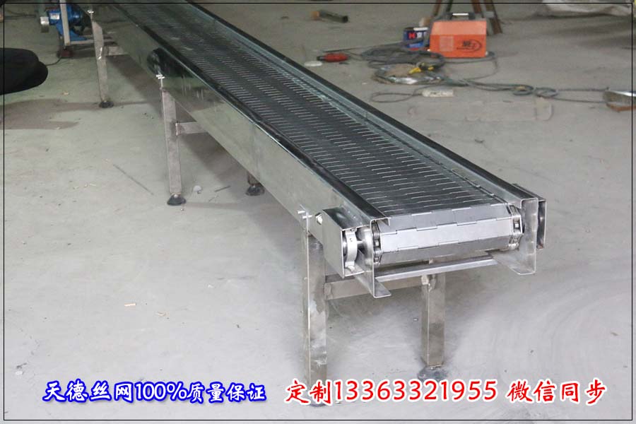 名稱:鏈板輸送機(jī) 材質(zhì):碳鋼 規(guī)格:長2.5米,使用寬度200mm 機(jī)身板厚2mm 鏈板:節(jié)距38.1mm 板厚1.5mm 串桿6mm 刮板高20mm 間隔300mm一個 。