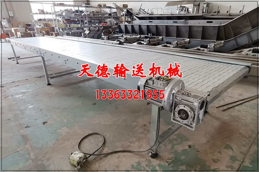 艾葉烘干加工線鏈板輸送機利用固接在牽引鏈上的一系列板條在水平或傾斜方向輸送物料的輸送機,以單片鋼板鉸接成環帶作為輸送機的牽引與承載構件承載面具有橫向隔 片置于槽箱中驅動環帶借隔片將煤刮運輸出。它由驅動機構、張緊裝置、牽引鏈、板條、驅動及改向鏈輪、機架等部分組成。在冶金、煤炭、化工、電力、機械 制造與工業部門中均得到了廣泛的應用。