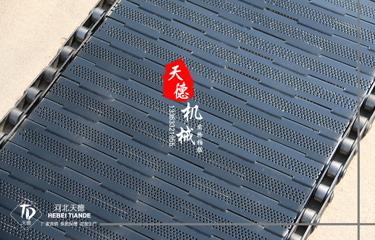 【鏈板輸送帶簡介】鏈板輸送帶非常堅固,鏈條驅動,用于中等和大負荷輸送。鋼板彎曲形成合葉,使用支軸將合葉和鏈條串在一起。兩端的鏈條可以使用開口銷或者墊圈來固定,使用開口銷方便拆卸,維護方便。