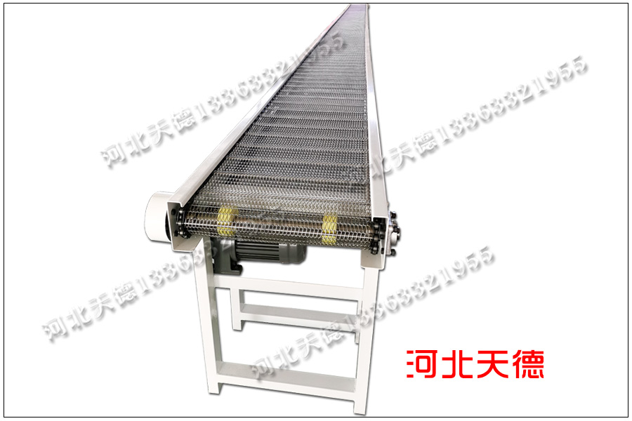 輸送線采用大滾珠鏈條式不銹鋼輸送帶來(lái)傳送物料,這種不銹鋼輸送帶是采用鋼絲編織在焊邊,鏈接上串桿與鏈條加工成的,詳細(xì)的規(guī)格尺寸是根據(jù)輸送產(chǎn)品的大小與重量來(lái)定制的,本臺(tái)網(wǎng)帶輸送機(jī)鏈條輸送帶詳細(xì)的尺寸為: