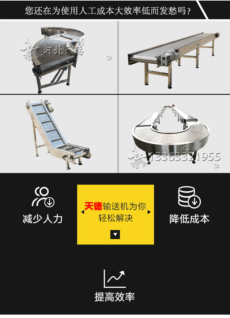 1.鏈板輸送機(jī)的輸送面平坦光滑,摩擦力小,物料在輸送線之間的過渡平穩(wěn),可輸送各類玻璃瓶、PET瓶、易拉罐等物料,也可輸送各類箱包。